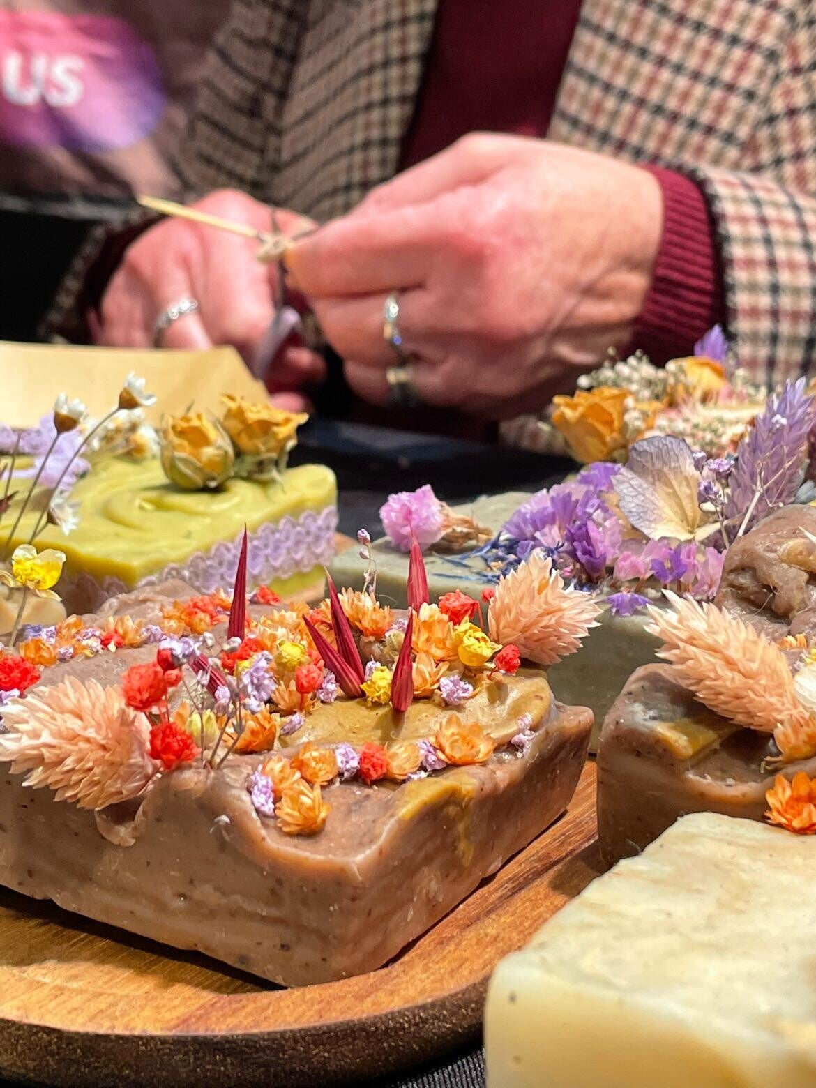 Maak geurige kunstwerkjes met olijfzeep, bloemen en kruiden