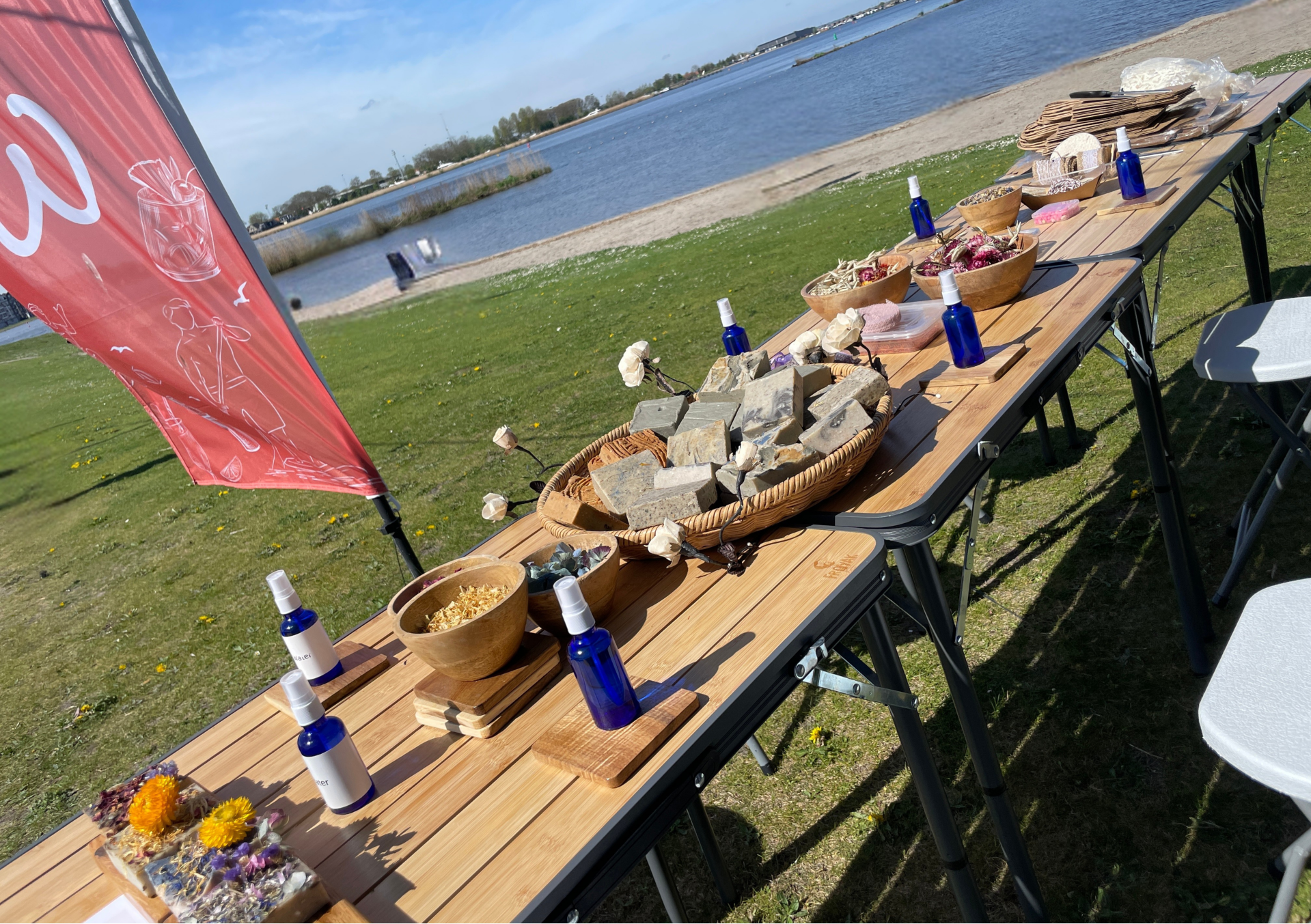 - Olijfzeep, bloemen, kruiden, etherische olie en decoratiemateriaal